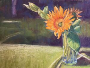 She attended Chicago’s School of the Art Institute, then later studied graphic design. She began her career in print and publishing, eventually becoming Art Director of Country Sampler Magazine. The twists and turns of her life and career shaped her perspective and technique, and in 2012 she made the leap-of-faith decision to pursue art full-time. Pamela’s words: “I’m inspired by the beauty all around me and from there it’s all about color and seeking the light.”She enjoys painting with oils and acrylics, but finds soft pastels more conducive for her lifestyle; “Soft pastels are immediate and versatile. They are portable, tactile and rich in saturation. I love their buttery, paint-like quality.”