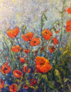 A workshop in 1992 led her to her enlarged flower series of over 350 paintings. She creates an almost three-dimensional effect by layering the oil paint and enhancing the colors and values. It can take 30 to 60 hours to create a painting in this manner. She has won numerous awards at Galleries and Art Fairs but feels helping her students find their own style is her biggest reward. Two quotes relate to Marge, “Find a job you love, and you’ll never work a day in your life.” and “Take time to smell the roses.”