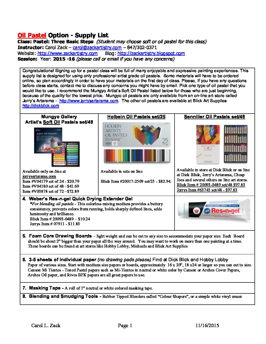 Supplies needed Supply ZACK_Pastel_Class